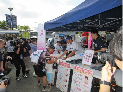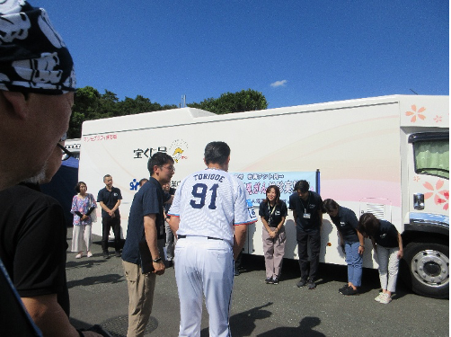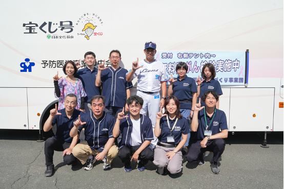 当事業団は、令和7年9月6日(土)にベルーナドームで開催した埼玉西武ライオンズ対千葉ロッテマリーンズ戦にて、無料乳がん検診、啓発グッズの配布、Lステージでの啓発活動を行わせていただきました。